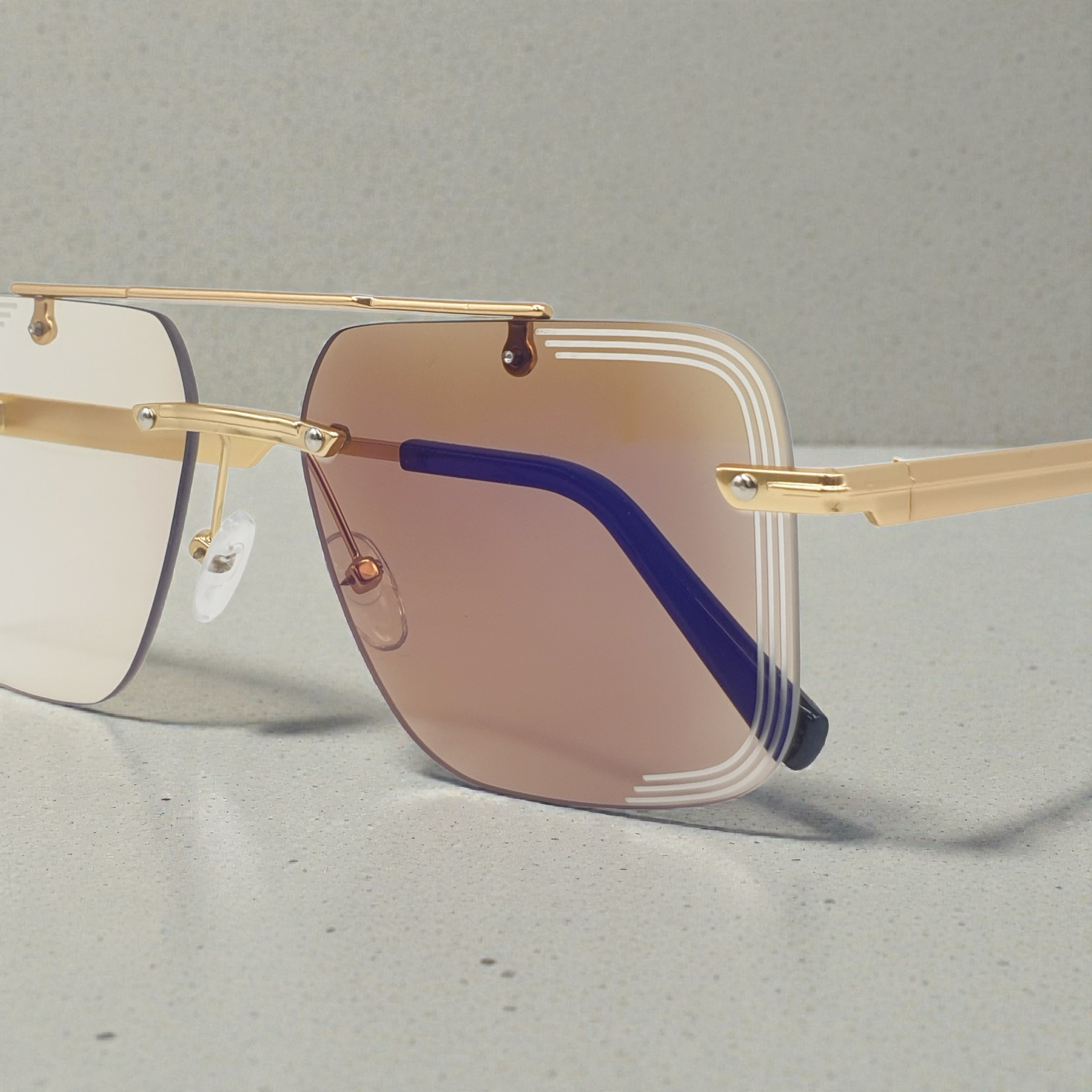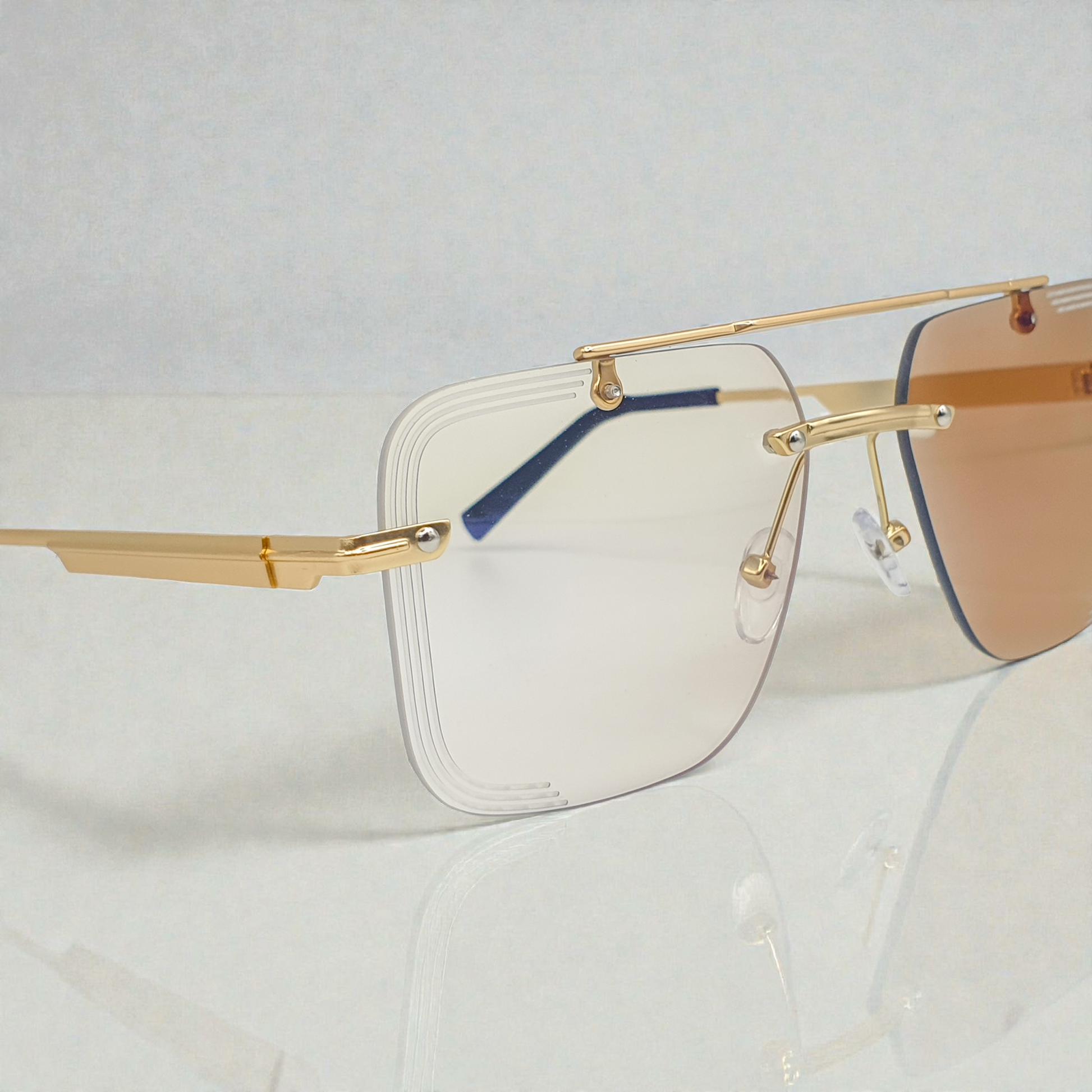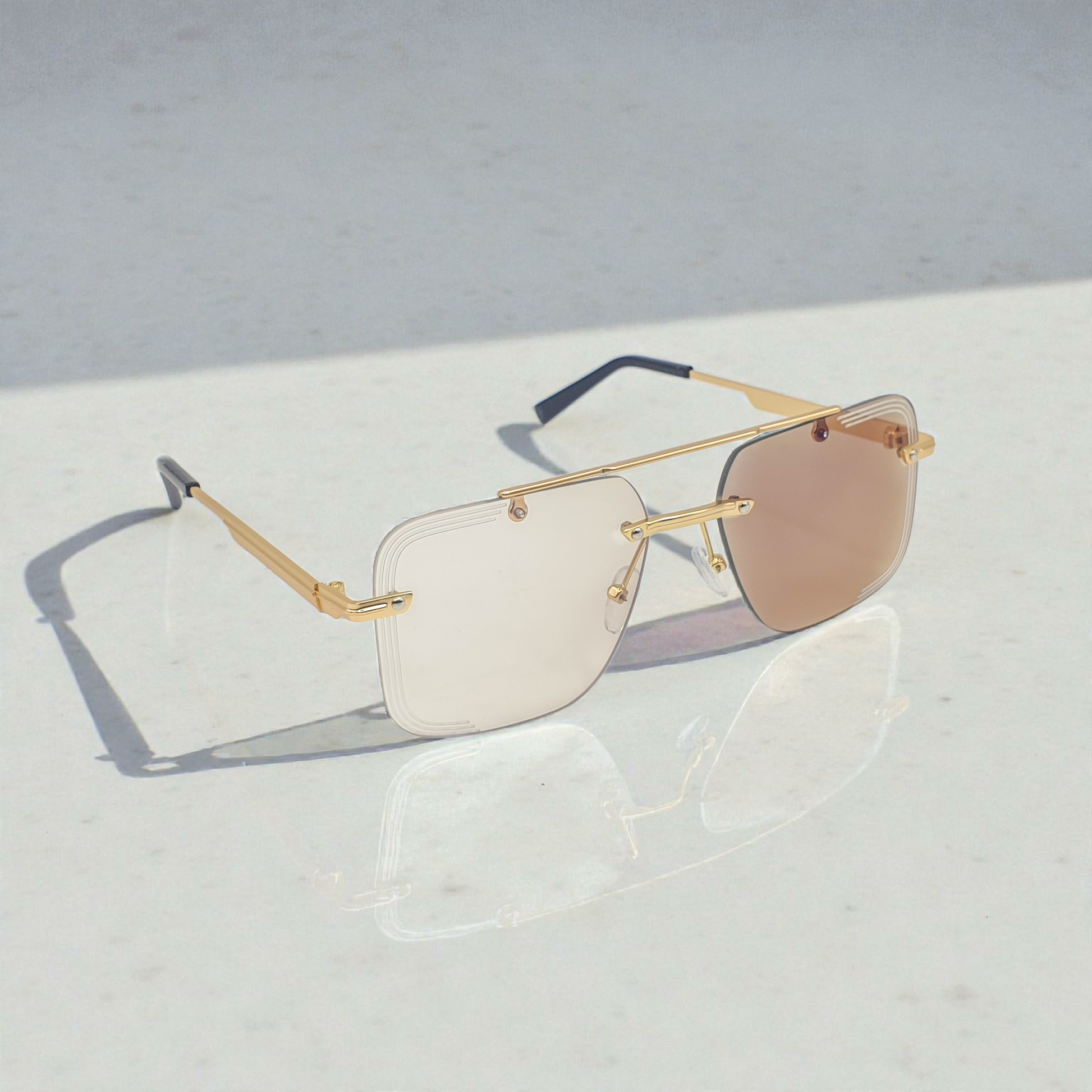 Premium rimless square sunglasses with luxury gold-tone metal frame