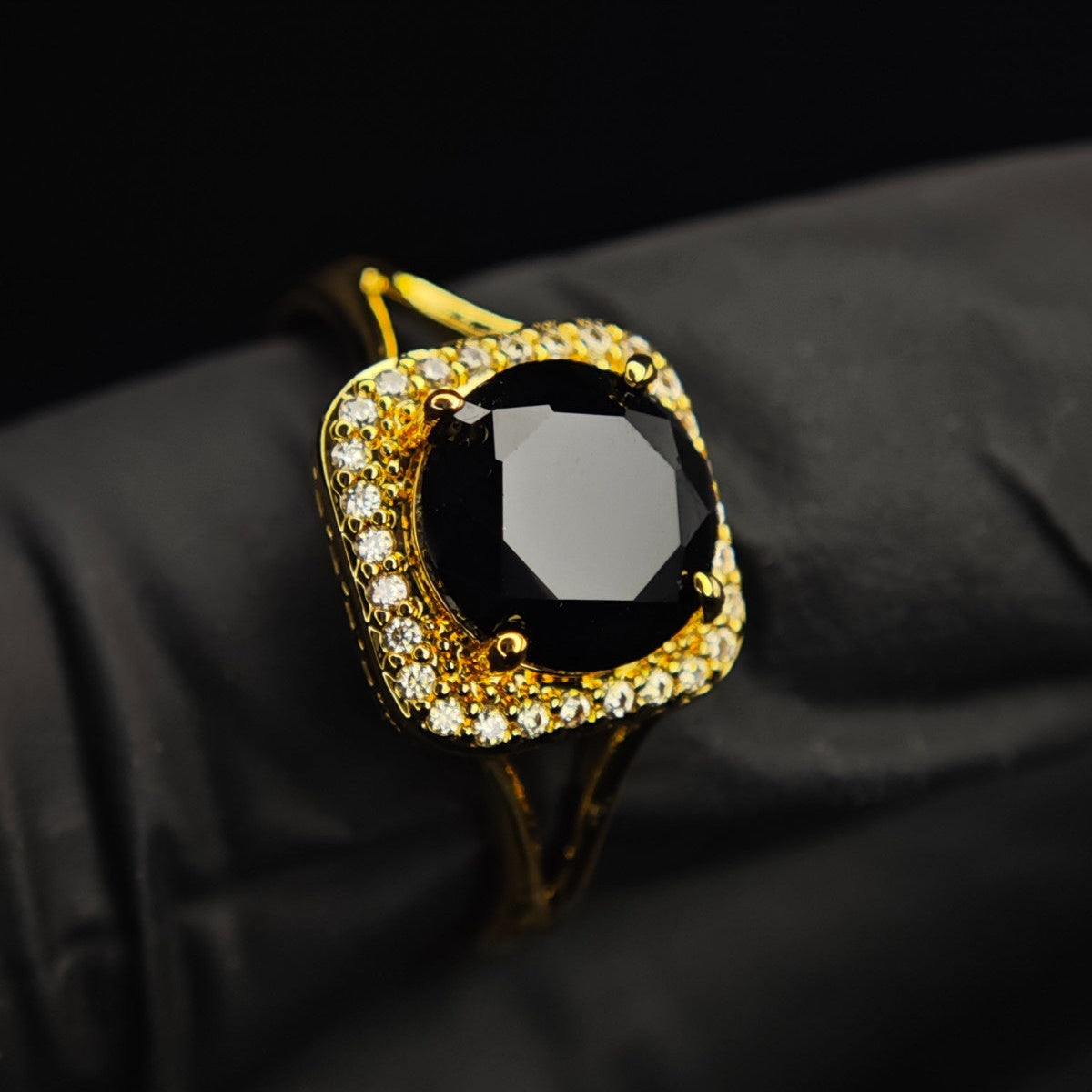 Adjustable Ring: A statement piece with a matching onyx-style stone and crystal halo, featuring an adjustable band to ensure a perfect fit for any finger.
