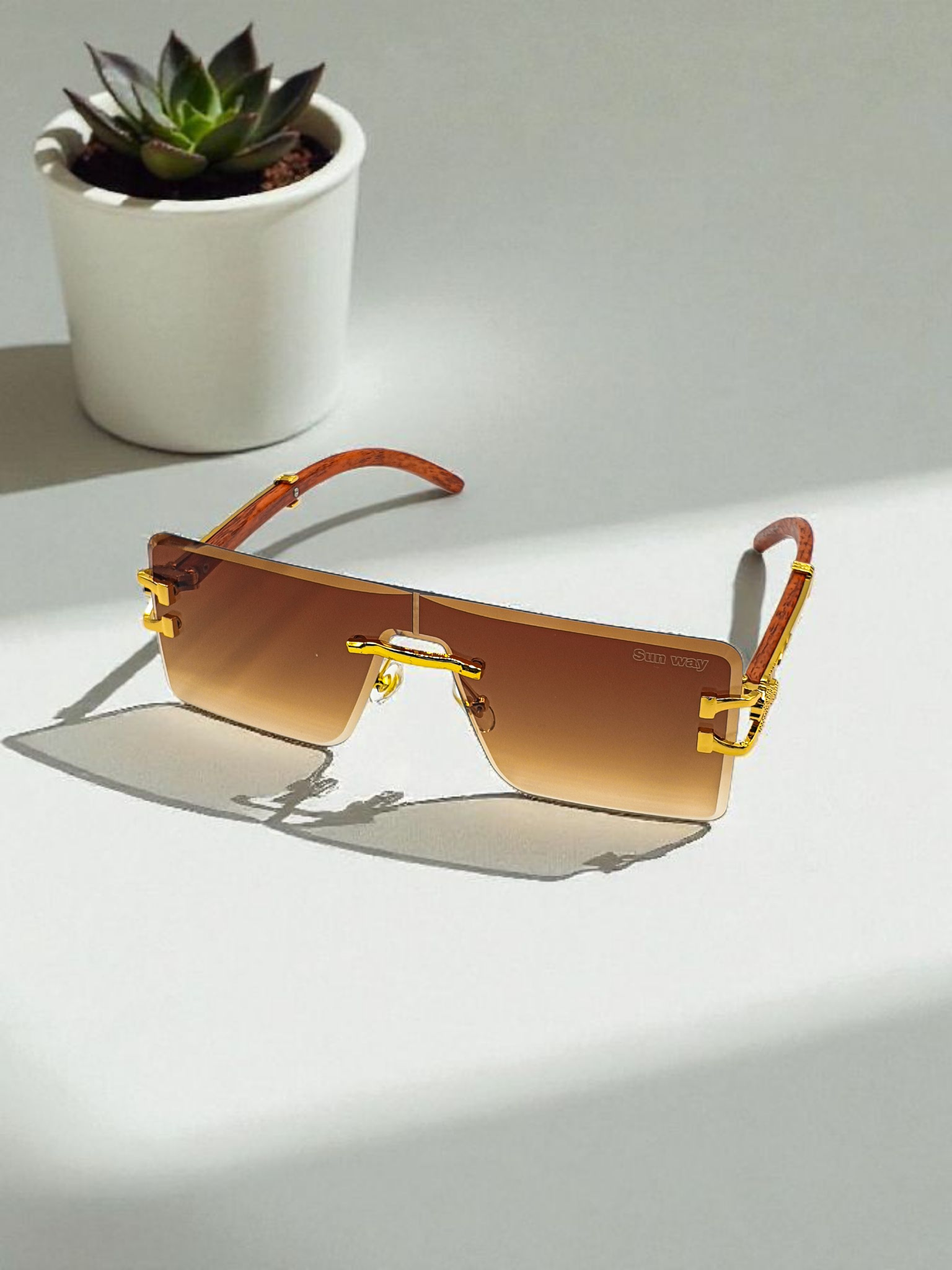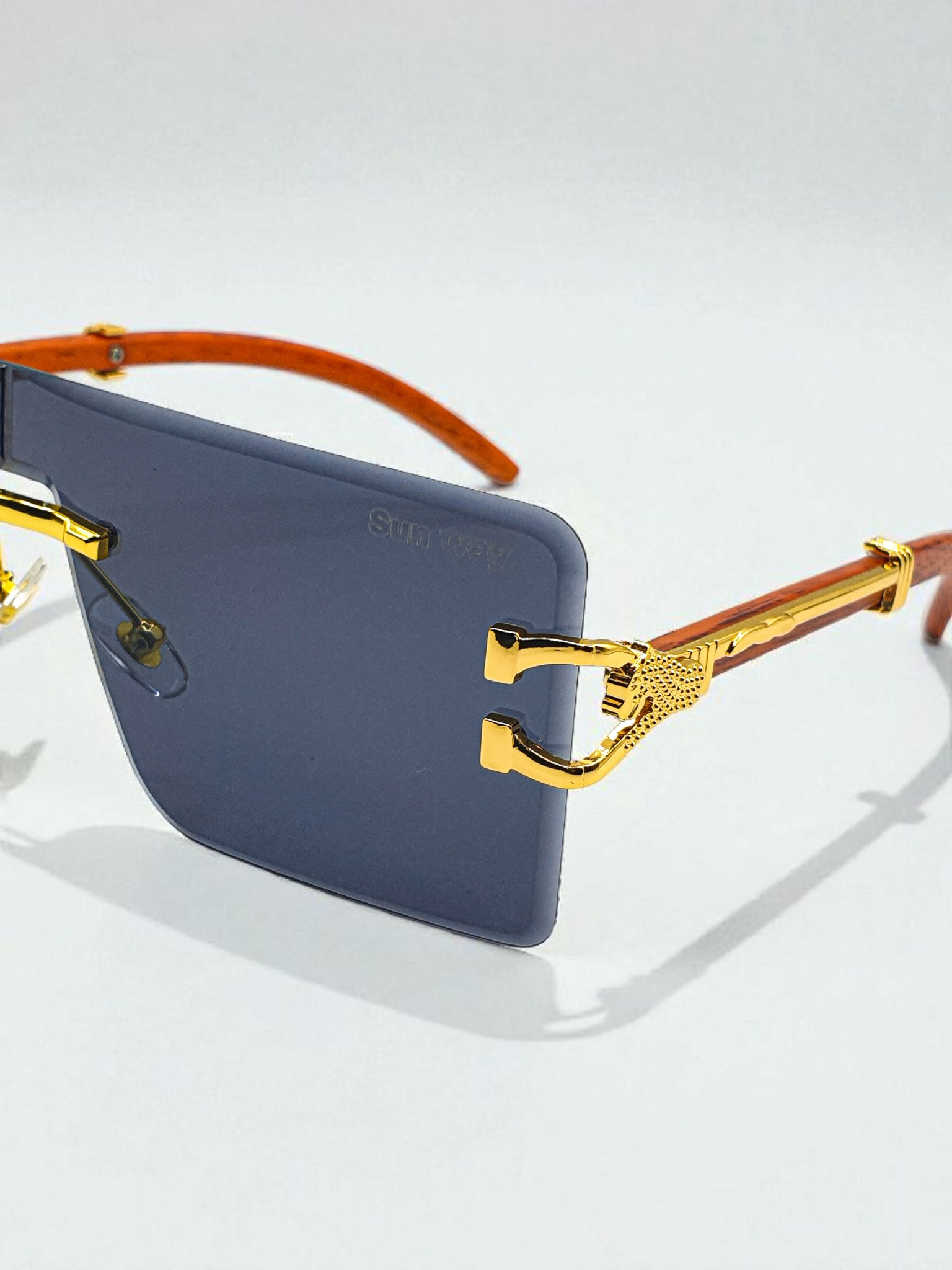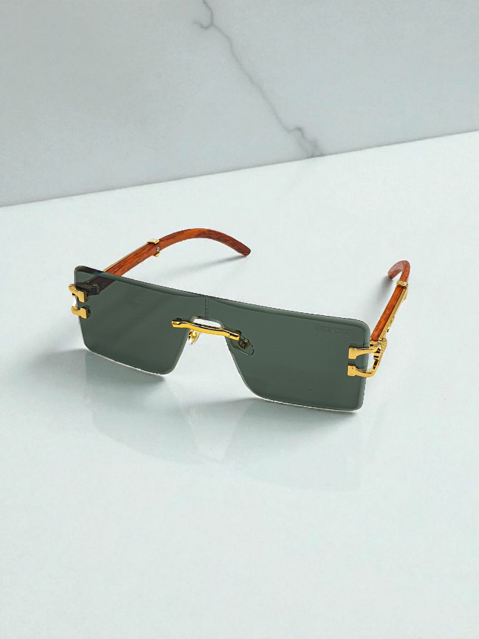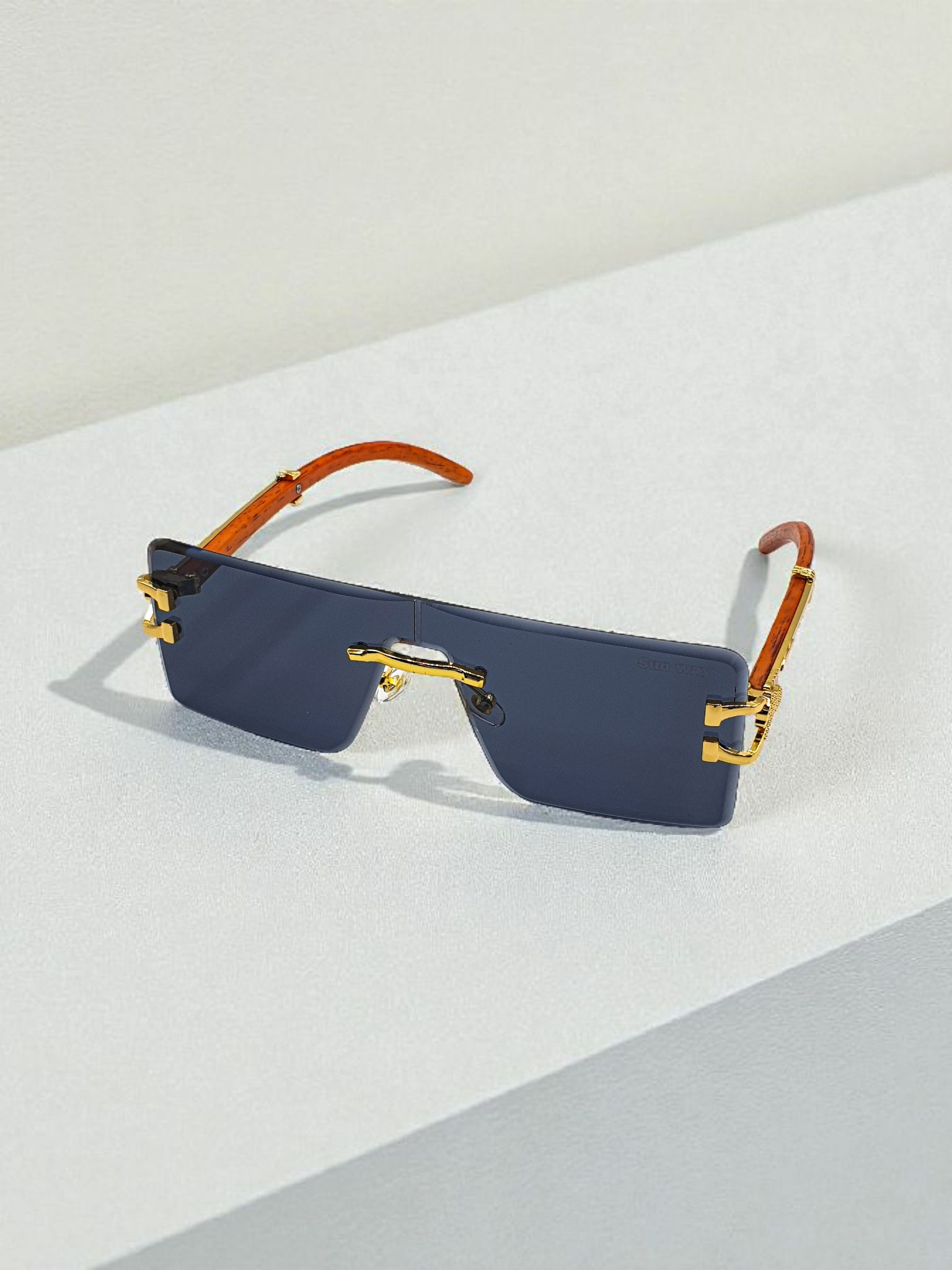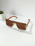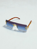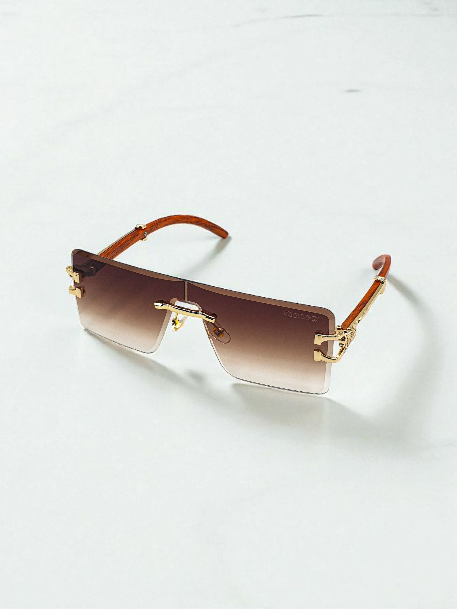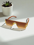 Wide rectangular rimless lens design for a bold, modern, statement look